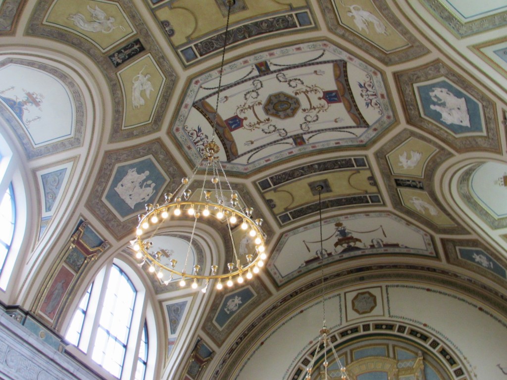 Cotopaxi (volcano in Ecuador), Oil 1862, by Frederic Church is flanked by The Lost Pleiad, 1888 & The Blind Girl from Pompei by Randolph Rogers. Intricate details invite staring. The DIA tiled foyer is grand with interesting symbology.