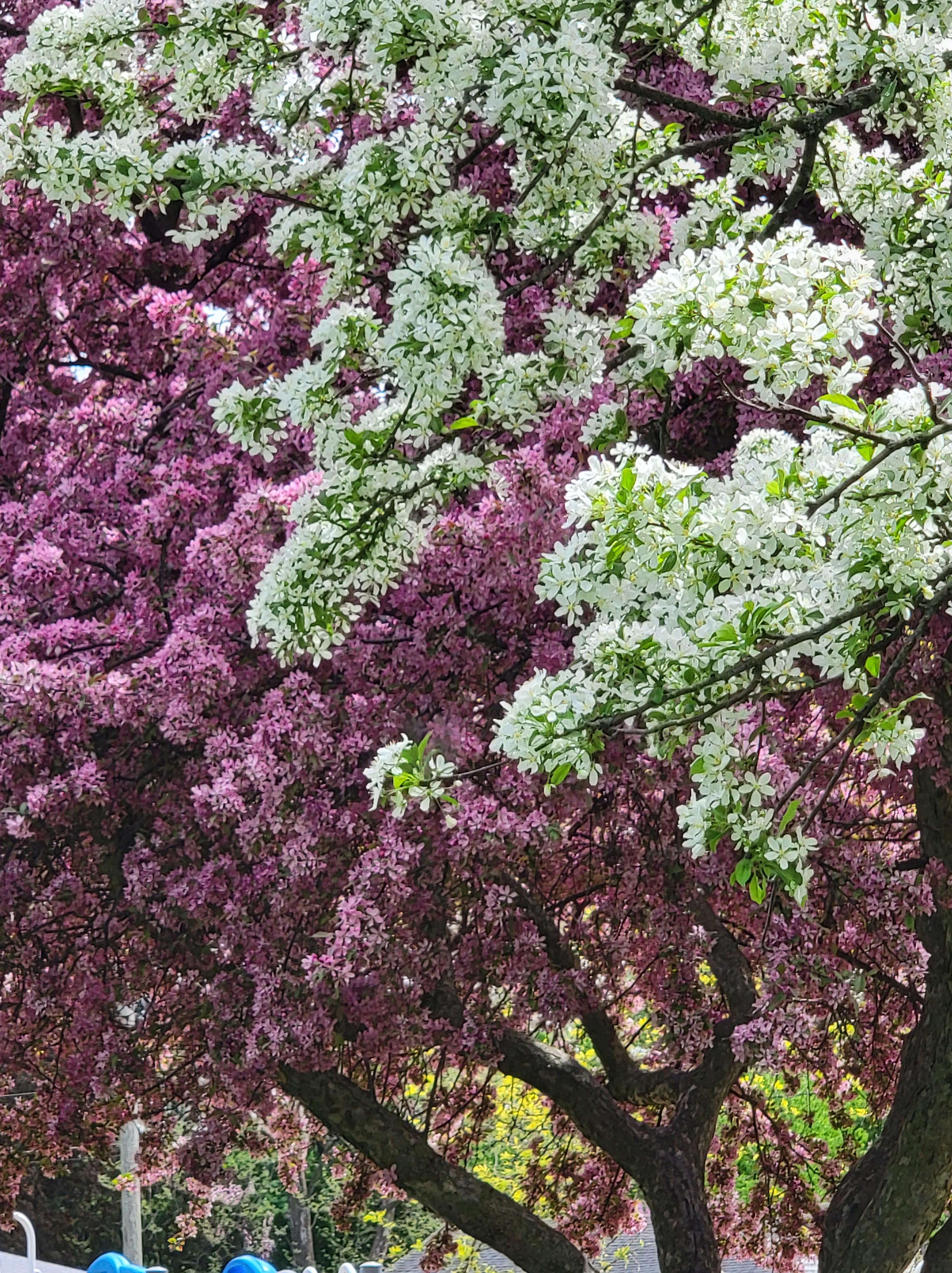In mid-spring, violas, lily of the valley and dandelions lure floating bumblebees into my domain, while other bees stay high in maples and other trees around the neighborhood. Taming the spread of the violets, dandelions and lily of the valley in our yard the old-fashioned way feels futile at times, but it’s taught me to appreciate imperfect beauty and the futility of complete control. Those three “weeds” take the place of a personal trainer for me (so many squats) and remind me I’m just a guest here. I only pull clover from the garden beds, not from the lawn as it blooms all season and attracts pollinators. In our local orchards honeybee hives are sometimes brought in for pollination season, then removed as soon as petals begin to drop.