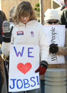 Yesterday was a national day of action for supporters of 2012 federal unemployment insurance extensions with demonstrations across the country from 2-3 p.m. I told my husband that I planned to lend to the numbers in a demonstration outside our local state representative’s office, but that I was not bringing a protest sign. That was not a problem because the organization We Are The People had a sign for me and all of the other demonstrators. Within minutes of meeting a few of my compatriots one of the organizers asked me if I would be willing to say something to the crowd because they did not have an unemployed woman on their speaker schedule. “Just 2 to 3 minutes”, he said. All of a sudden I faced backing up my values with action that could result in publicity. One of my former coworkers had already driven by, so I knew the rumor mill would be spinning within the hour, but risking publicity is daunting when I am hoping someone will hire me. The work world is a precarious and intimidating place with people becoming uber-compliant in hopes of keeping their pay. Being unemployed has made me careful, too (note the abbreviation of this blog’s author’s name). However when put to the test I will do what is “right”, to the frustration of many past acquaintances and sometimes to my detriment. Anyone who knows me would tell you that if you ask for my opinion I will offer it up 99% of the time, often ad nauseam because I deeply desire people to understand what I say. What began as 2 to 3 minutes speaking to my fellow demonstrators segued into a request from the Grand Rapids Press to print my name along with the picture on this post (we are praying), an interview request from a local labor paper, and another for an on camera interview with a reporter from a local news station. To say I was uncomfortable and nervous is like saying blue flames are hot. My only regret is that I had not prepared a statement, something I will be sure to think about PRIOR to attending future demonstrations. No matter how prepared though, I would never have anticipated a reporter asking me if in lieu of finding a job as an administrative professional a.k.a. secretary, I would consider becoming an apprentice plumber. I am sad when I hear remarks like, “if they spent more time looking for a job rather than protesting…” and “they should be willing to take work outside their field for less pay”. First of all, the slim number of jobs to apply for leaves me with some spare time. Secondly, every business needs secretarial work completed just as much as they need the toilets and faucets to not leak. Almost as much, anyway.